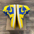 Step into sneaker royalty with the Laney Jordan 1 Retro High OG, inspired by Michael Jordan's high school colors. This iconic colorway features a striking combination of varsity royal blue, varsity maize yellow, and white that pays homage to MJ's Laney High School. The premium leather construction and classic Jordan 1 silhouette make these a timeless addition to any rotation.