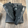 The Jordan 4 Retro Black Cat (2020) is one of the most iconic all-black sneakers in Jordan Brand history. This used pair from the 2020 retro release features premium black nubuck construction with tonal details, creating a sleek, stealthy aesthetic that honors the Air Jordan 4's legendary design while delivering timeless versatility.