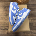 The Nike Dunk Low Polar Blue features a crisp blue and white colorway with classic Dunk styling. This pre-owned pair is in used condition and does not include the original box.