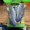 Rare collaboration alert! The Yu-Gi-Oh Joey Nike Air Max Muscle 95 brings anime culture to sneaker design. These pre-owned kicks feature unique styling inspired by Joey Wheeler. Size 9.5. Note: Card not included.